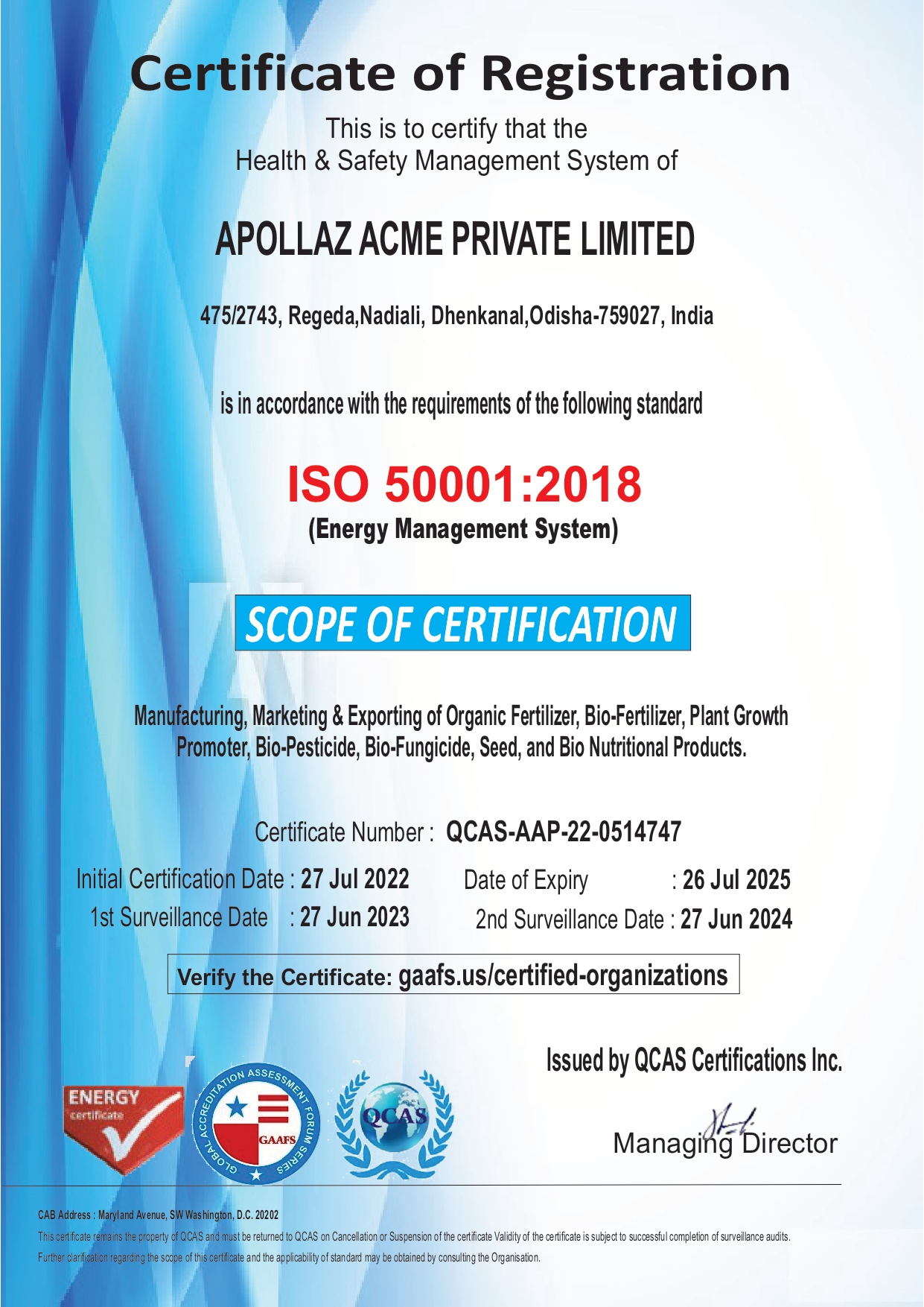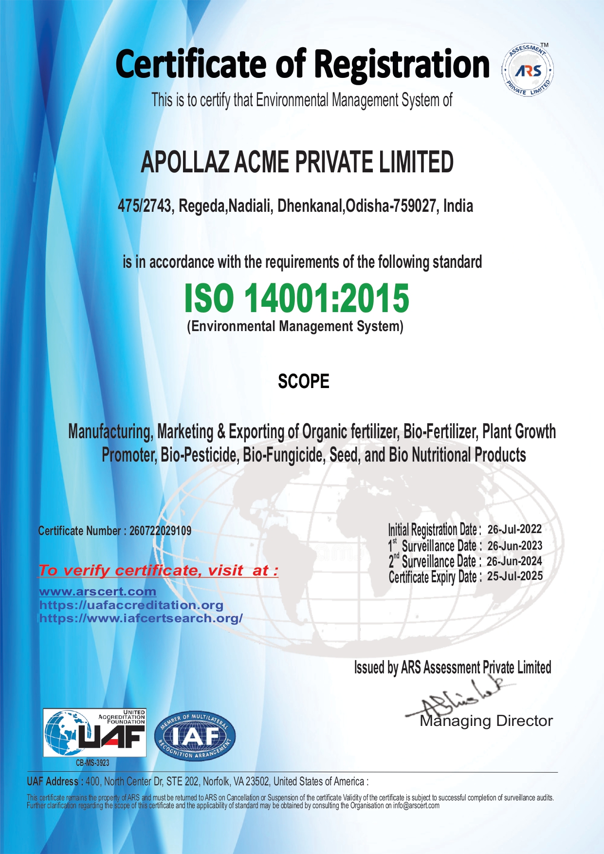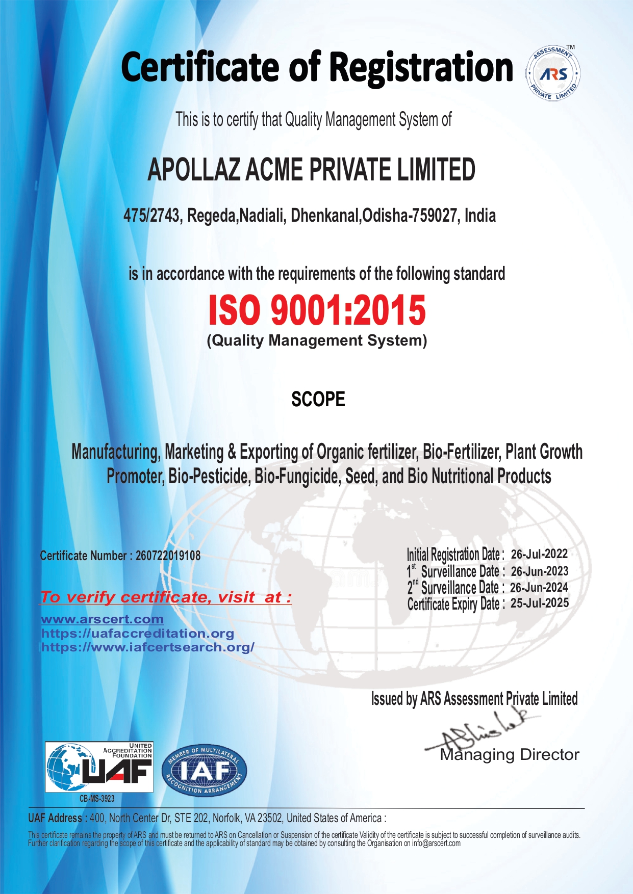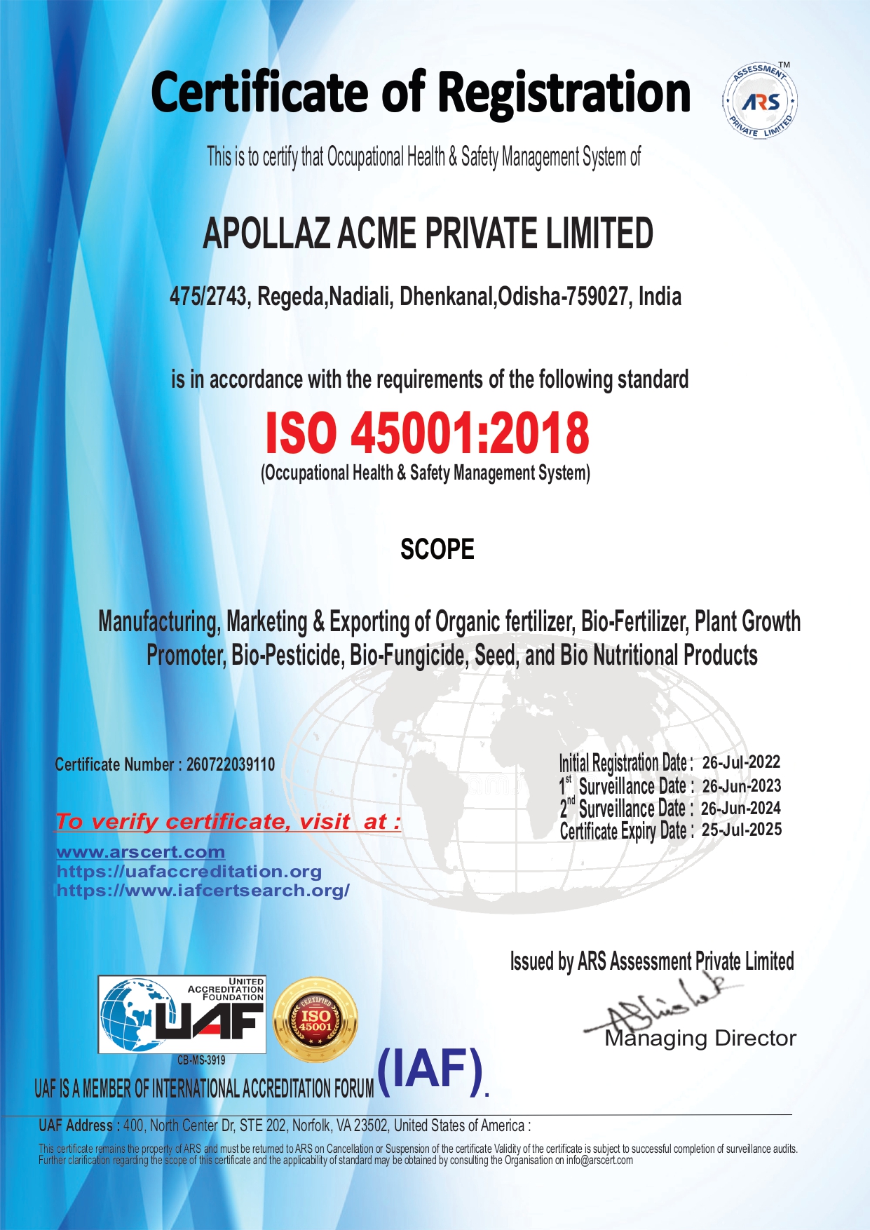 Apollaz Acme Pvt.Ltd beginning in the year 2017 in the state of Odisha, is today one of the rapidly expanding organizations in the field of agriculture. It engaged in manufacturing, marketing & Exporting agro-inputs that are essential for organic agriculture such as organic fertilizer, plant growth Regulators, soil conditioners, bio fungicides, biopesticides, and seeds to boost agriculture. Currently Apollaz is located in Jhrakhand , Odisha ,West Bengal & state of the art production unit is located 40 km from Bhubaneswar, in the state of Odisha on 87,120 Sq..Ft. Area with full setup of hi tech production and quality control machinery.